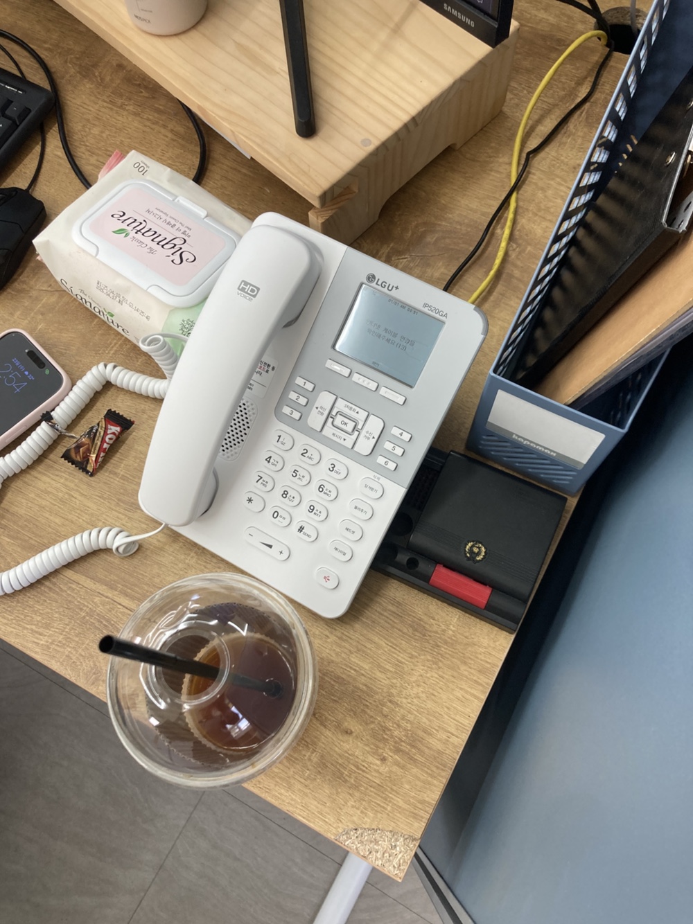 사무실 구조를 분석한 후, 인터넷 모뎀 → 공유기/허브 → 인터넷전화기 → PC로 이어지는 네트워크 흐름을 최적화했습니다.
